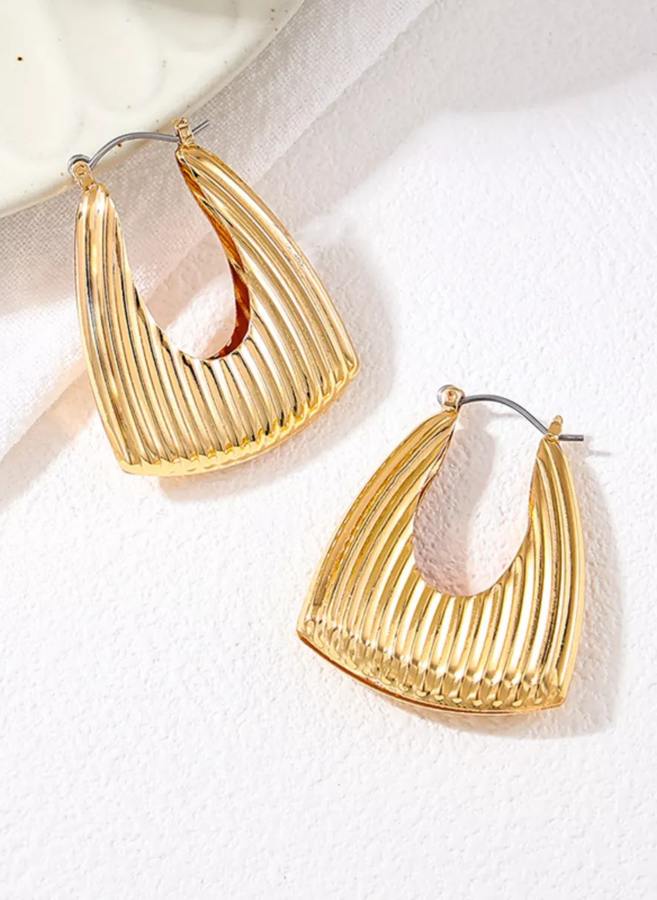 18K Gold-Plated Alloy Ribbed Triangular Hoop Earrings