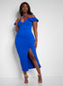 Got His Attention Ruched Bodycon Midi Dress - Royal Blue