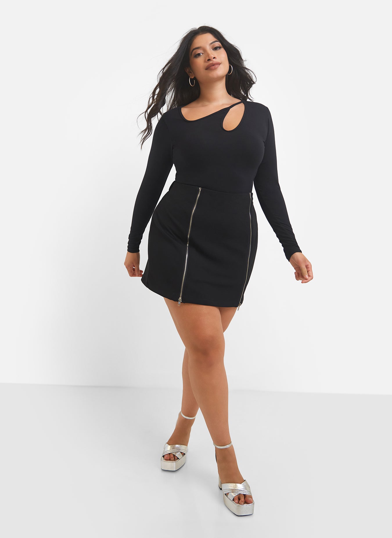 Piece of You Cut Out Long Sleeve Bodysuit - Black