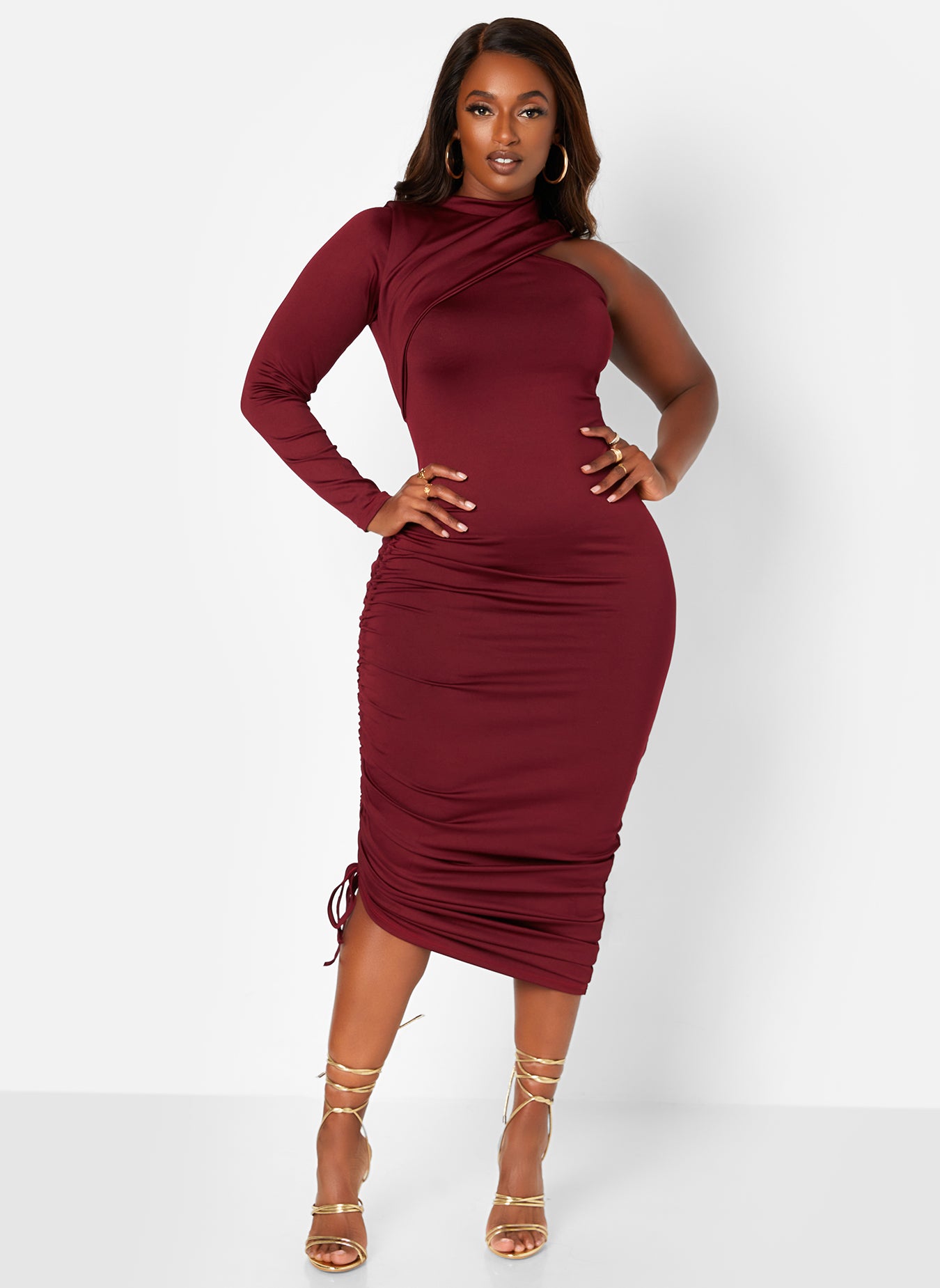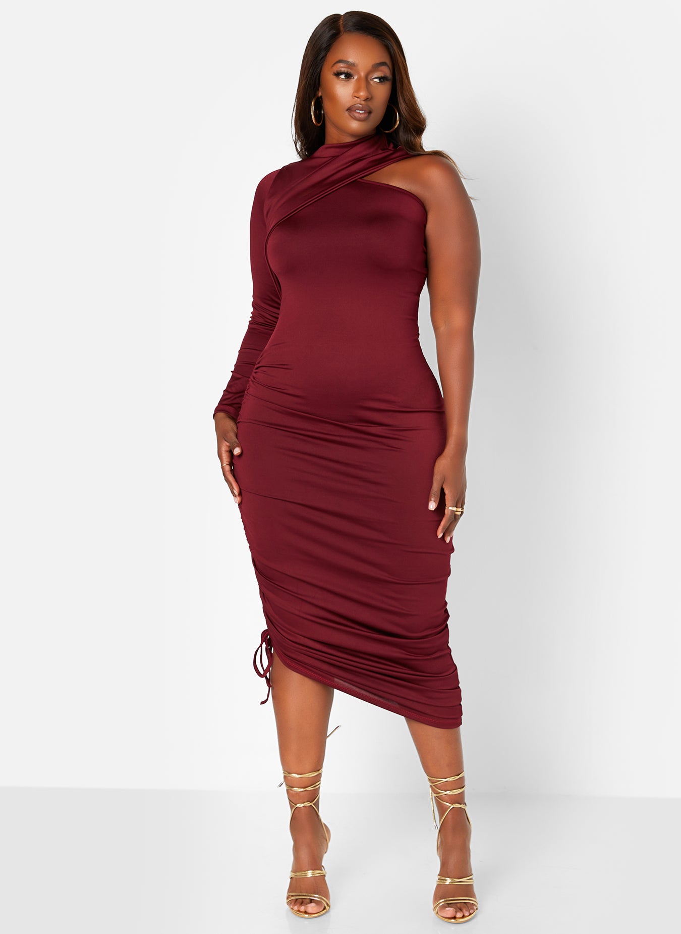 Rebdolls Won't Text Back Ruched Bodycon Midi Dress