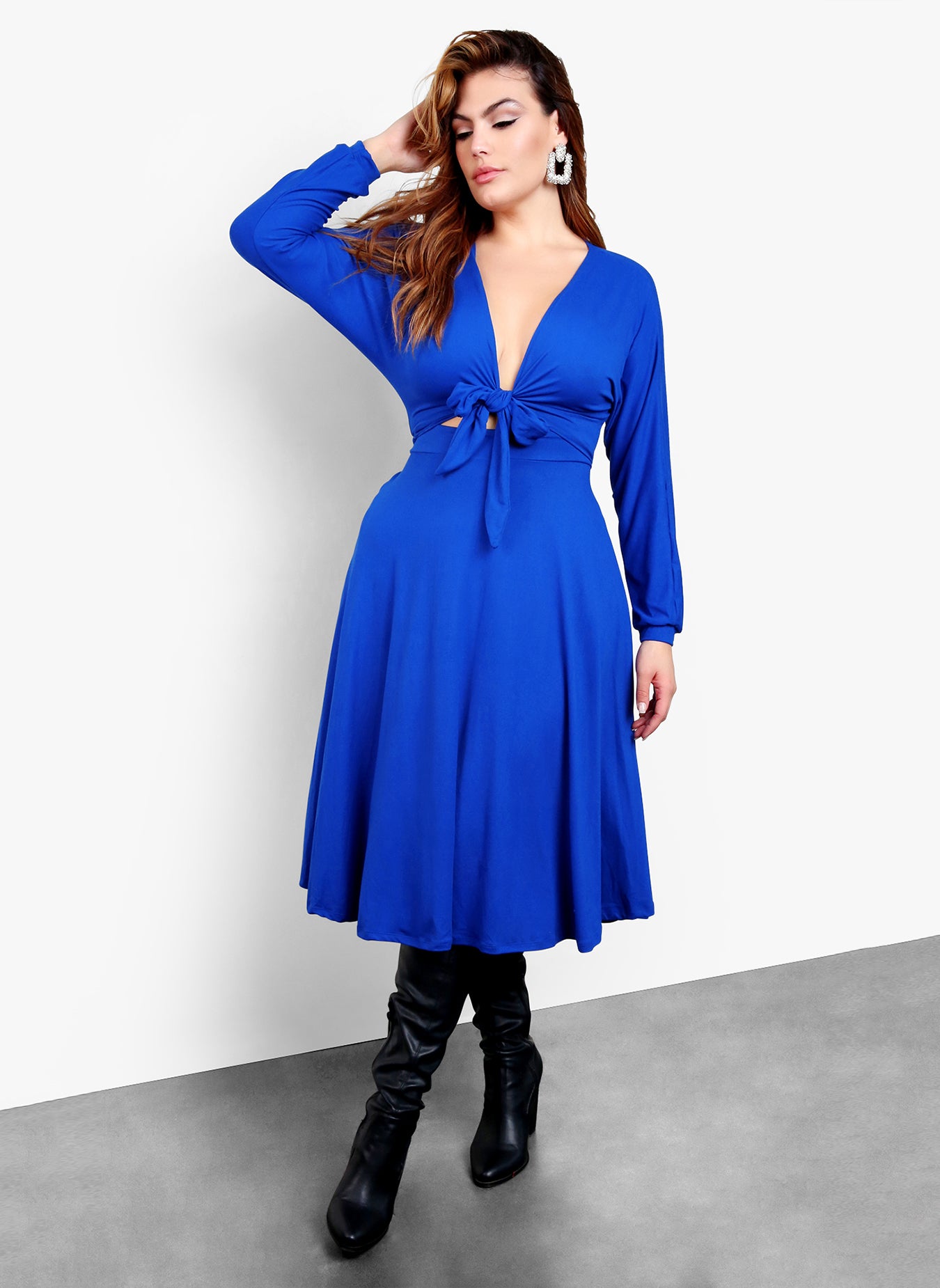 Your Needs Front Tie Skater Midi Dress - Royal Blue