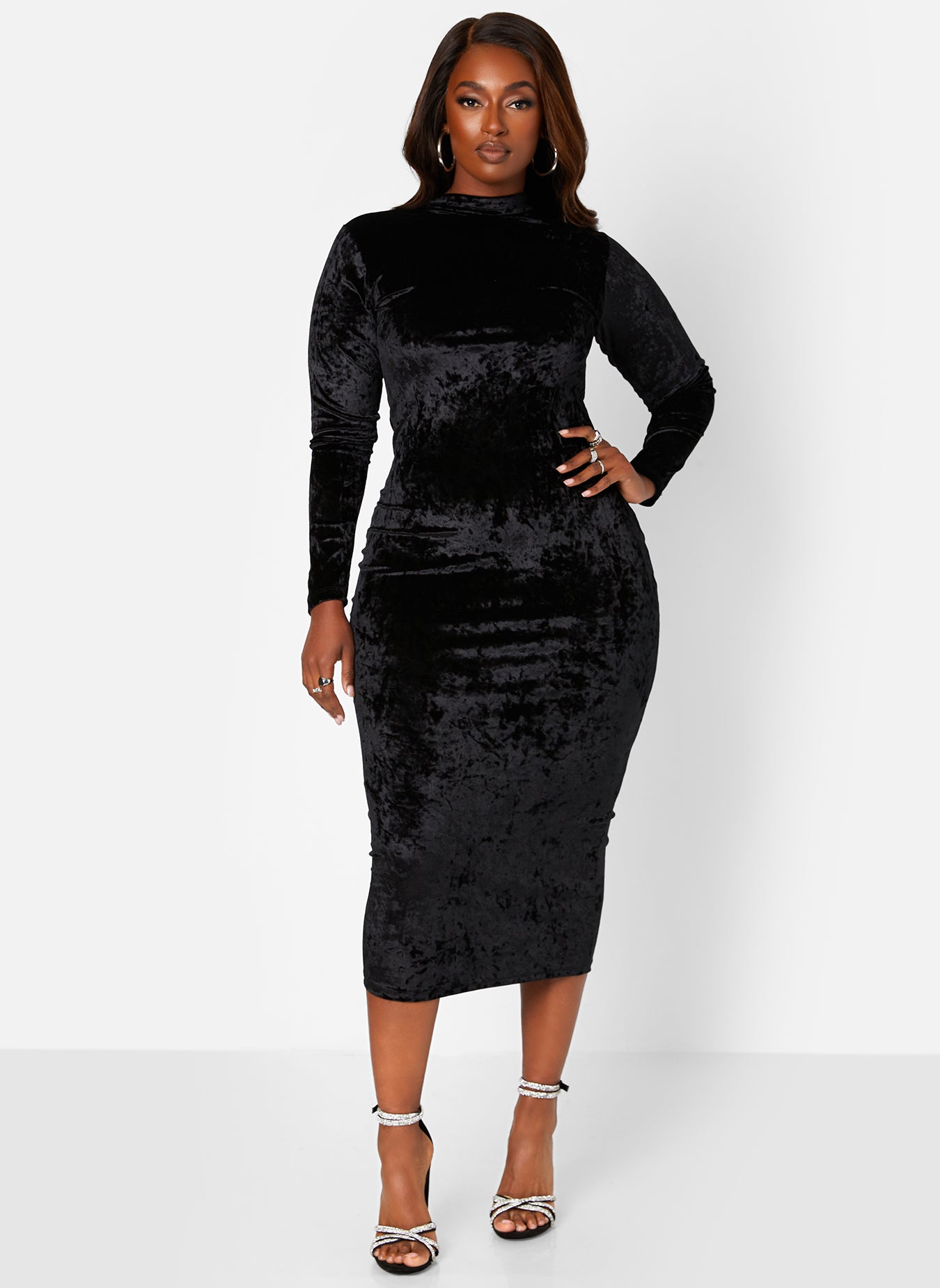 Just Last Night Velvet Turtleneck Midi Bodycon Dress