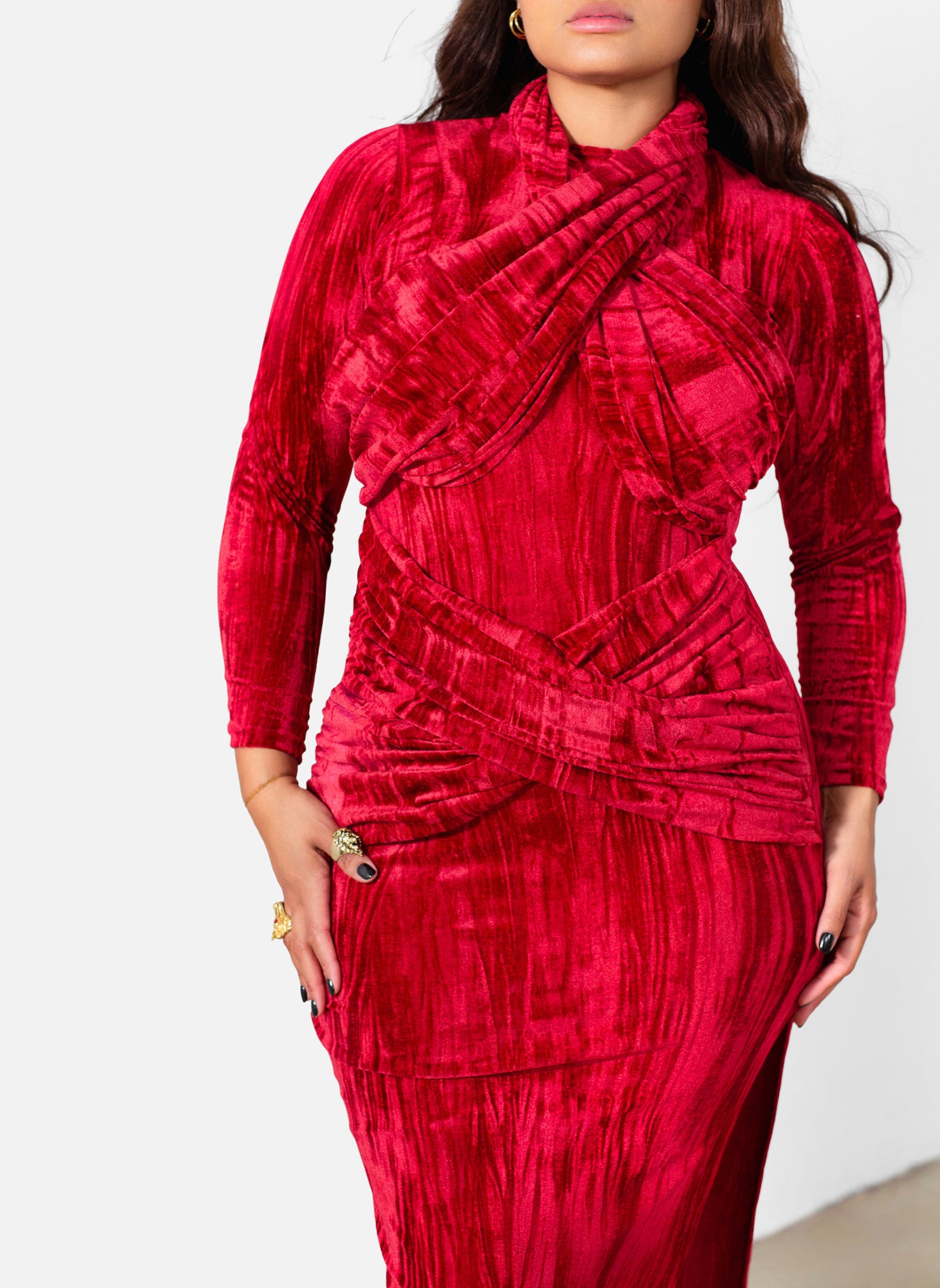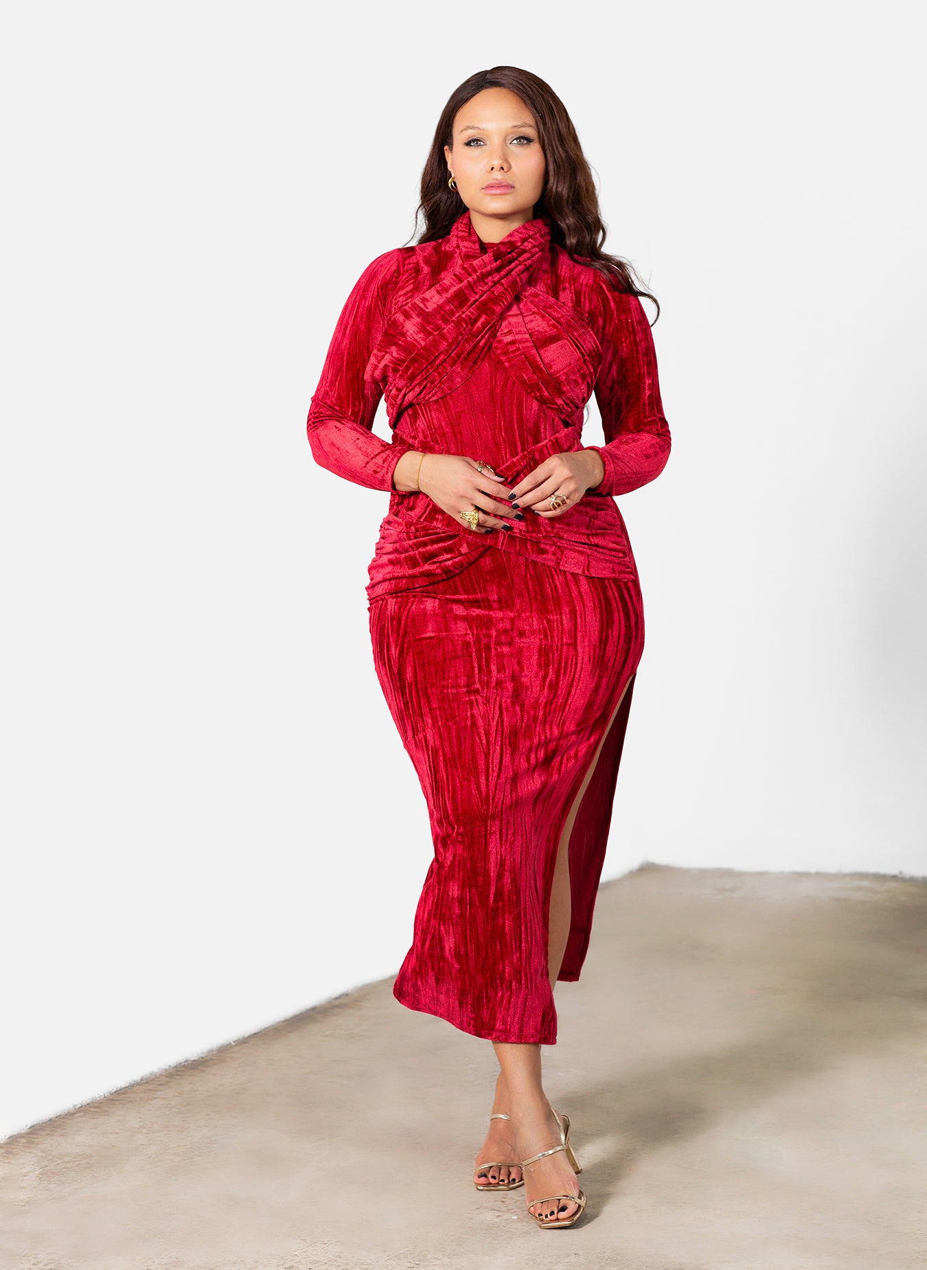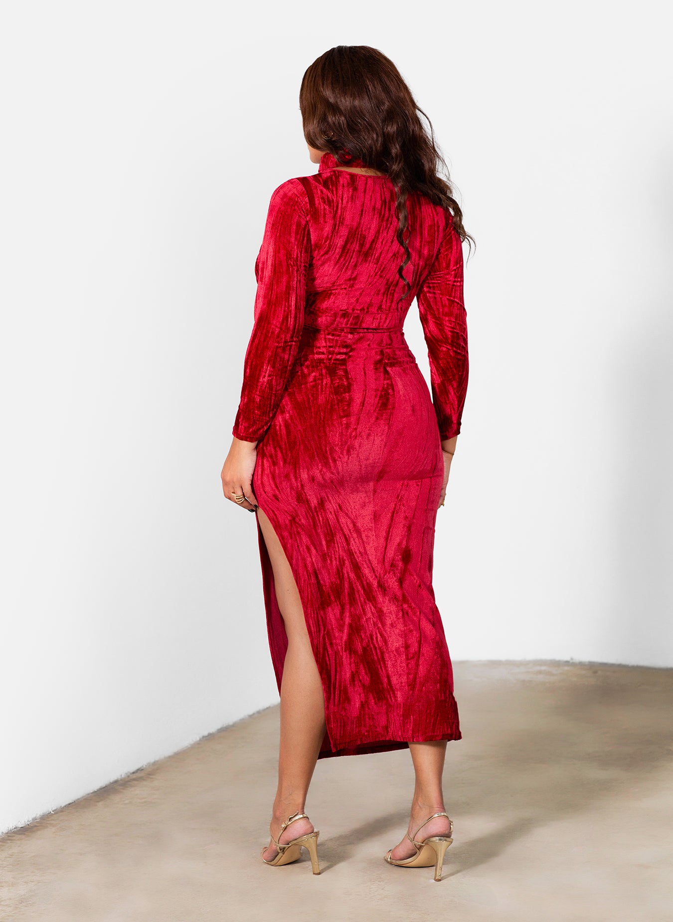 Marley Distressed Velvet High Slit Maxi Dress