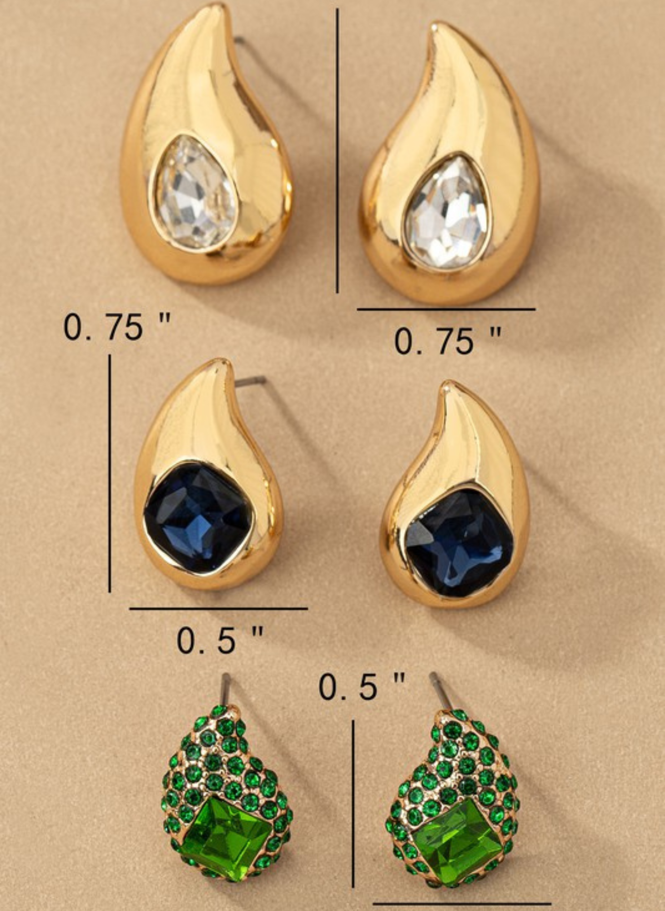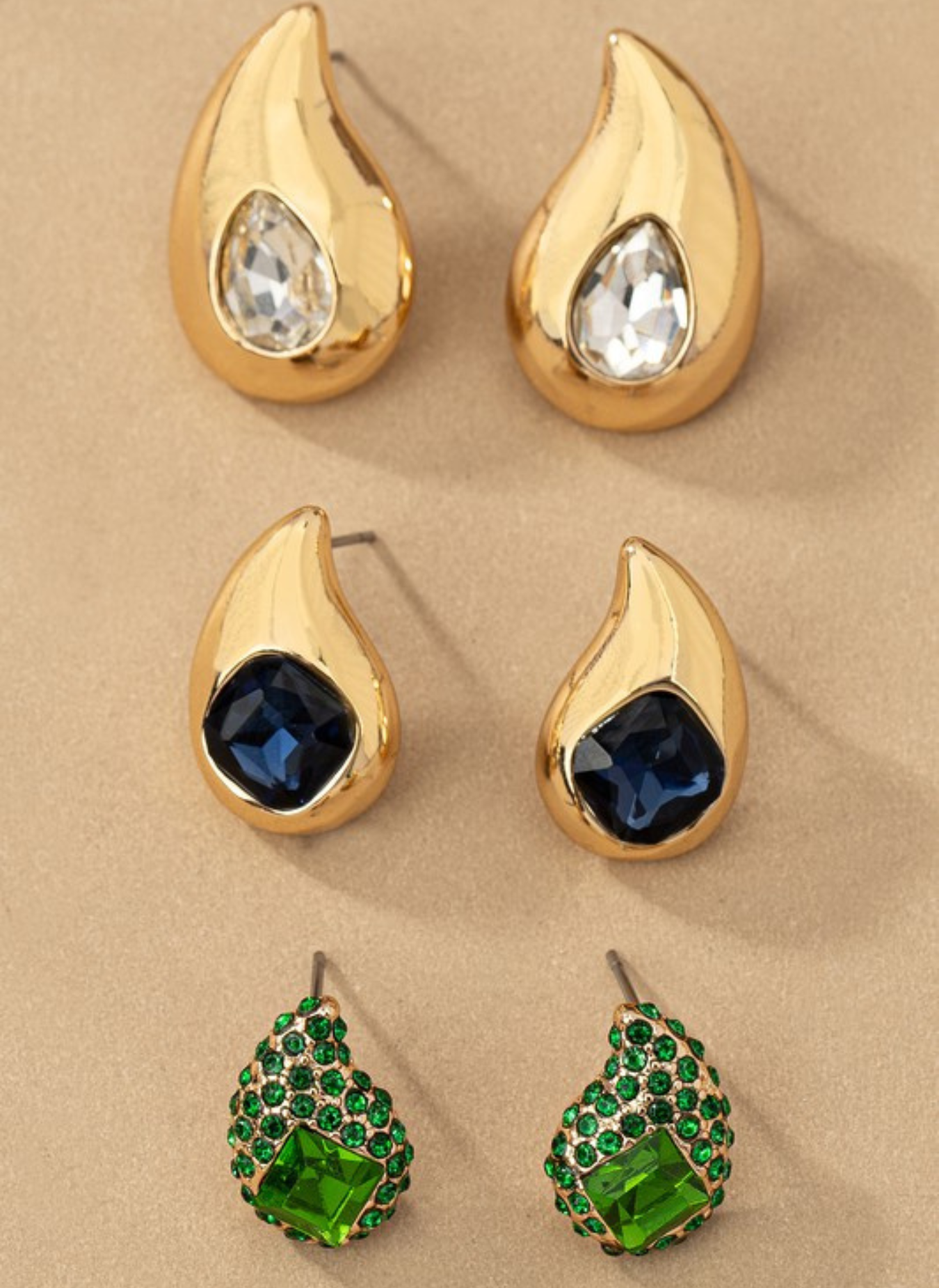 Trio Teardrop Earrings w. Rhinestones