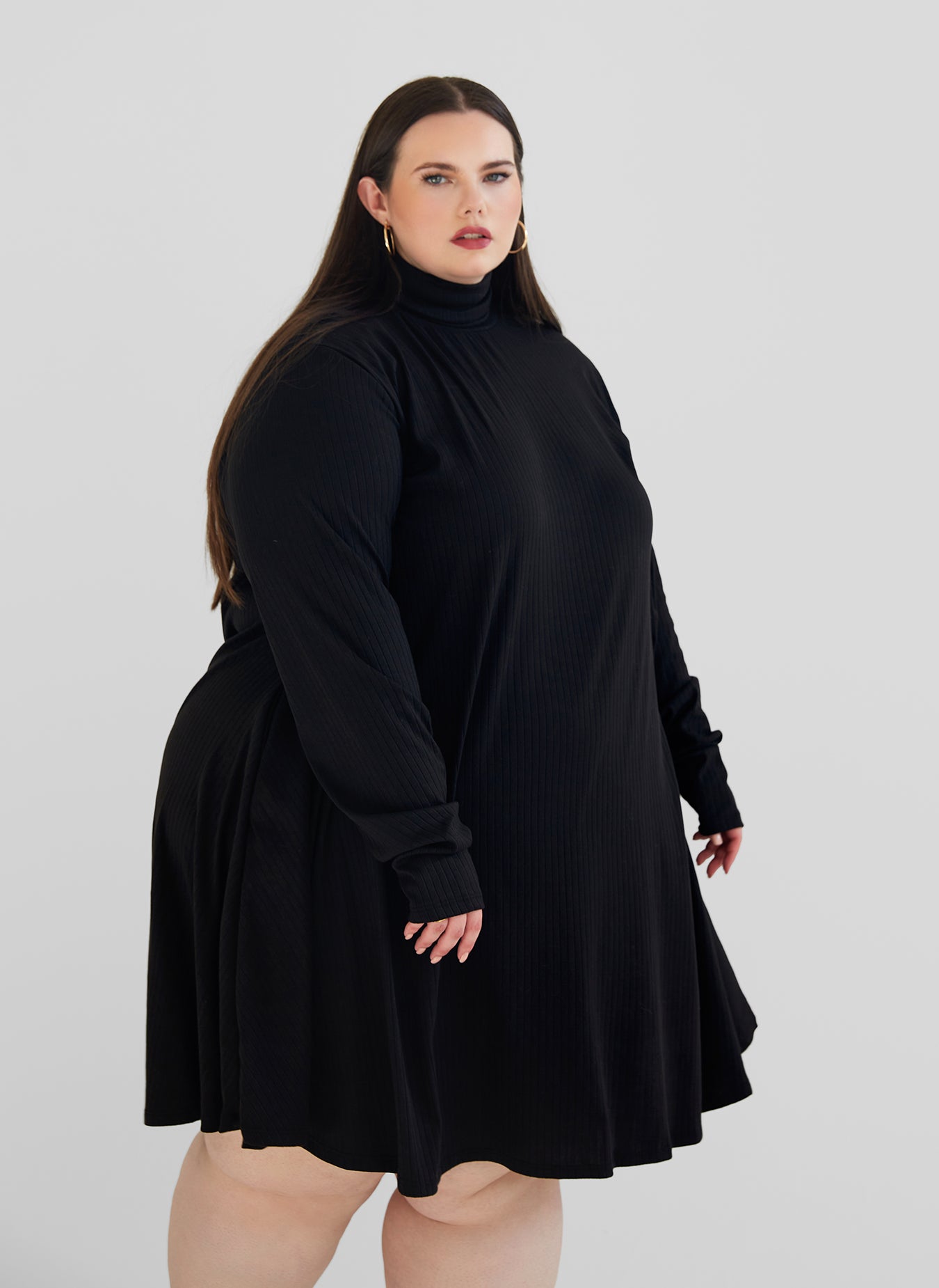 Essential Ribbed Turtleneck Mini Skater Dress