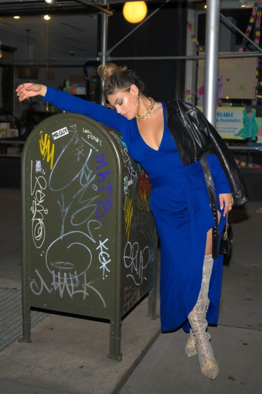 Get Loud Plunge Neckline Bodysuit - Sapphire Blue