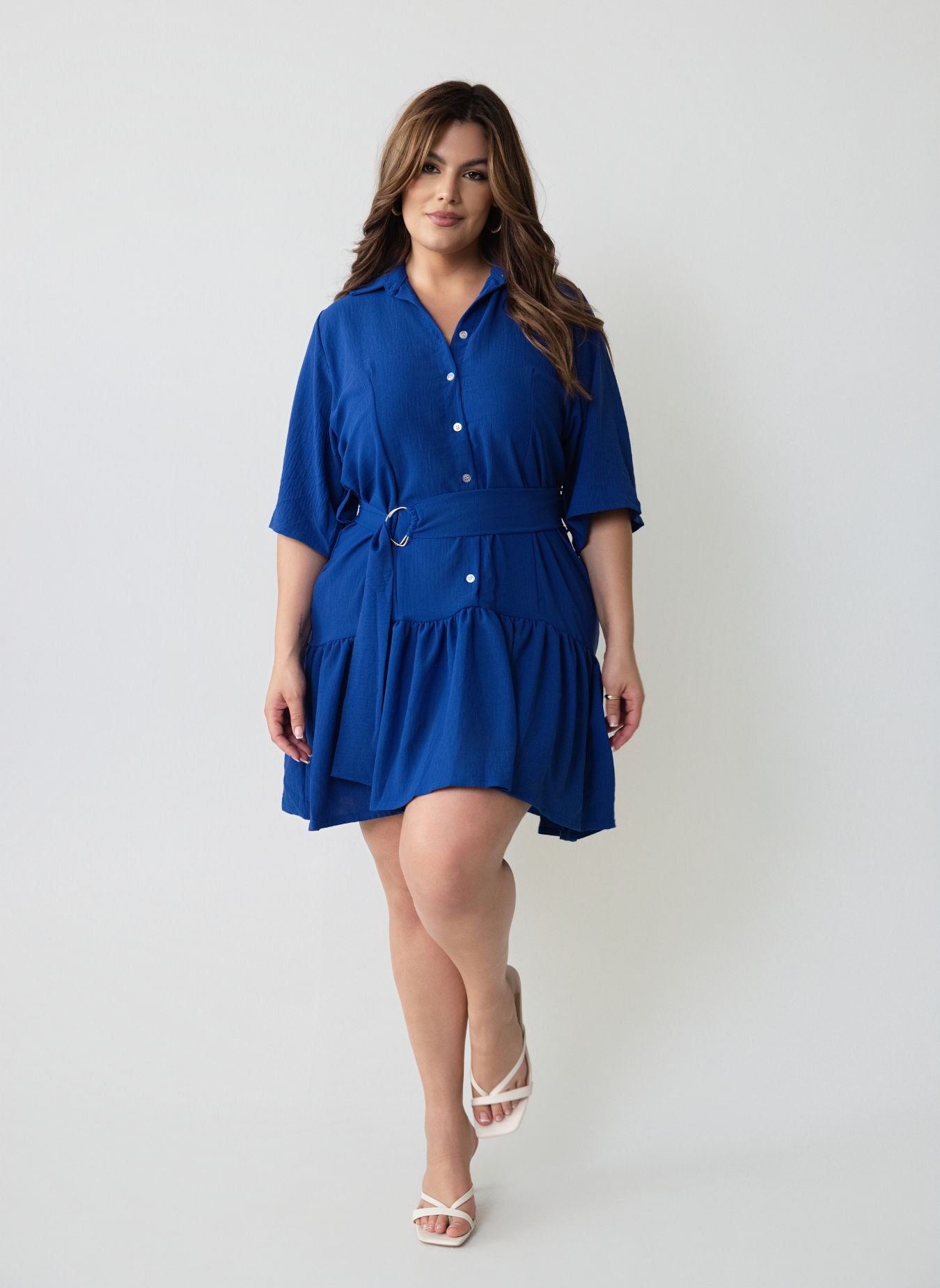 Allow Me Collared Skater Midi Dress - Blue