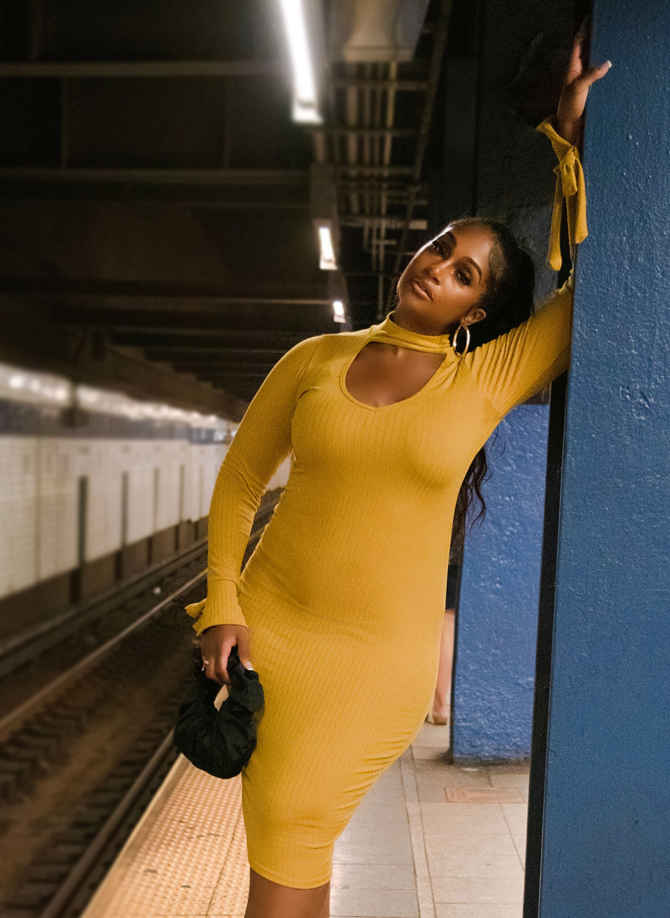 Best Dressed Ribbed Keyhole Tie Cuff Midi Bodycon Dress
