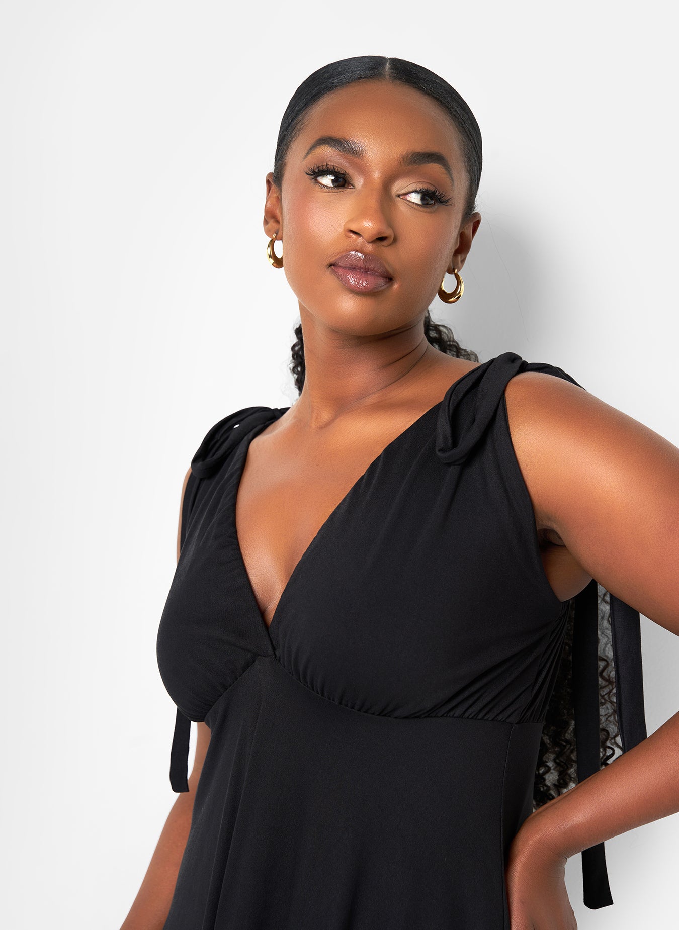 Blythe Tie Strap Ruffle Hem Mini Skater Dress - Black